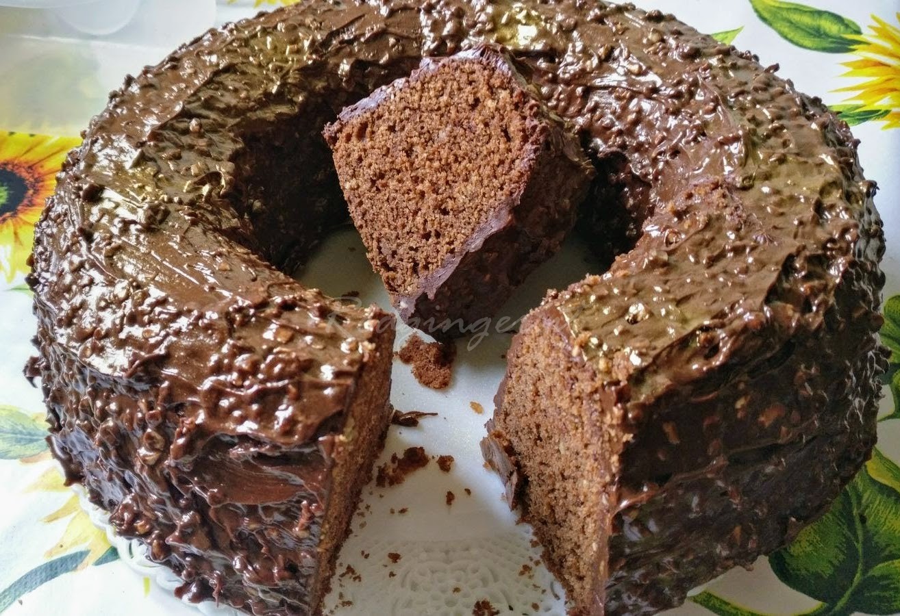 Una ciambella al cioccolato ricoperta di glassa Rocher. Mantiene la sua morbidezza per giorni e l’abbinamento con le nocciole la rende ancora più gustosa!