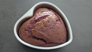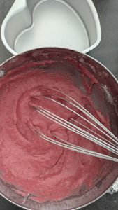 Per il cake mescolate con una frusta a mano la purea di lamponi, il succo di limone, olio, uovo e zucchero. Infine unite la farina ed il lievito. Mescolate fino ad ottenere un composto liscio ed omogeneo. Imburrate e infarinate uno stampo a cuore da 12 cm. Versate il composto nello stampo ed infornate a 180°C per circa 30 minuti.
